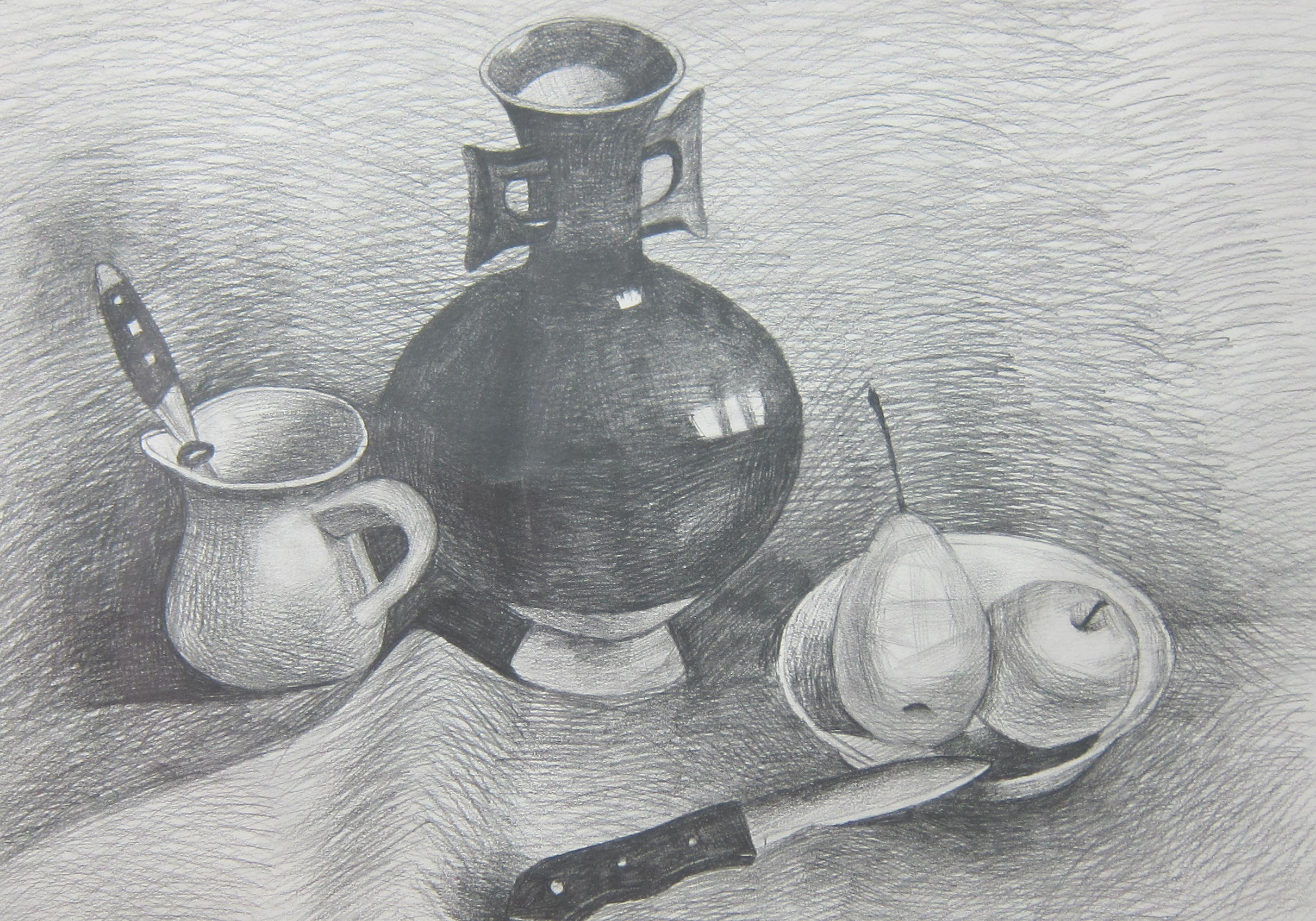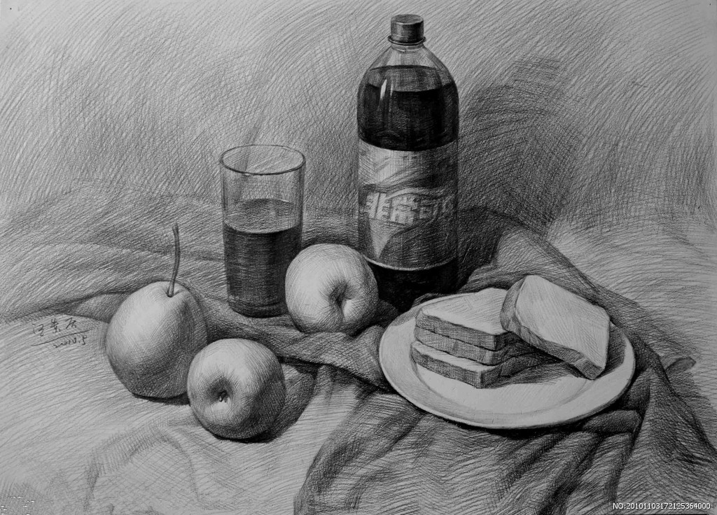 将画板倒过来置于画架上,重新审视整幅图面。画面的倒置会让你对它感到陌生,也正是由于这种奇特的观察方式,你能在瞬间感觉到画面存在的问题。譬如说造型是否准确,主次、空间关系是否得当,作品是否具有整体感等。如果你的作品主次清晰、中心明确、虚实得当,即使倒过来看仍然具有相同的感受。在素描完整的表现体系当中,“虚”与“实”的作用是极其重要的。
